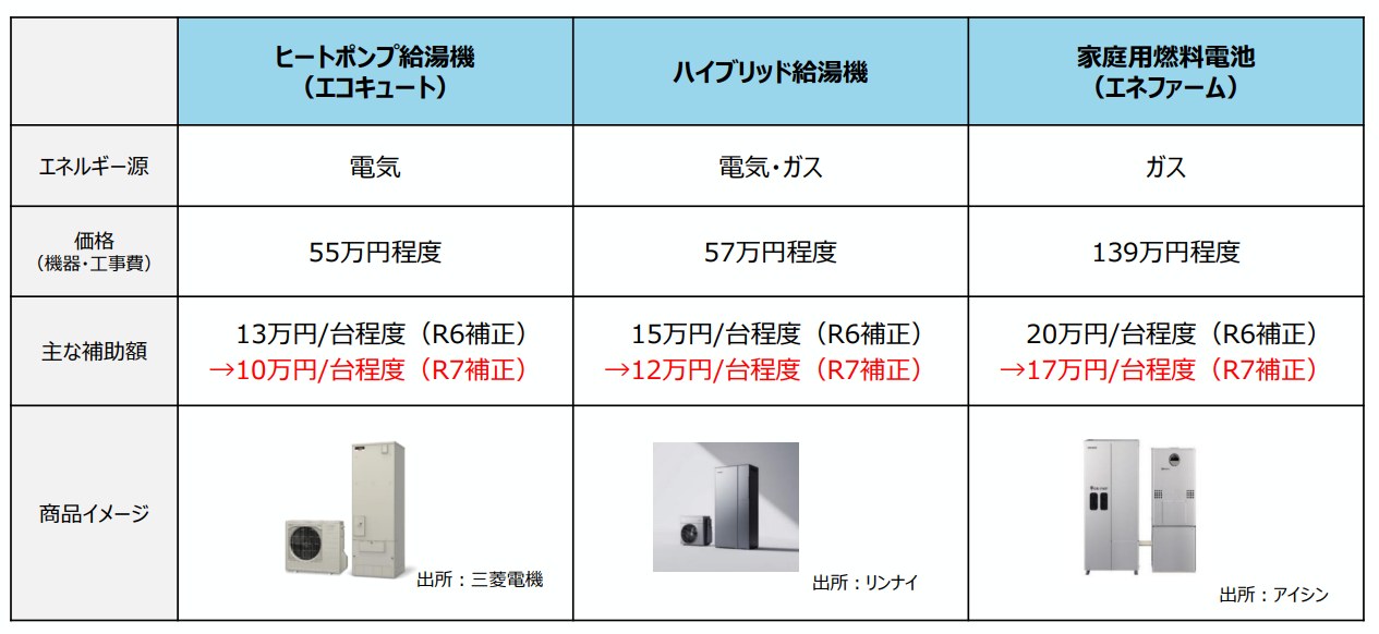 | 小型の省エネ型給湯器 (エコジョーズ/エコフィール) | なし | 5万円/台 | いずれか 1住戸1台まで |