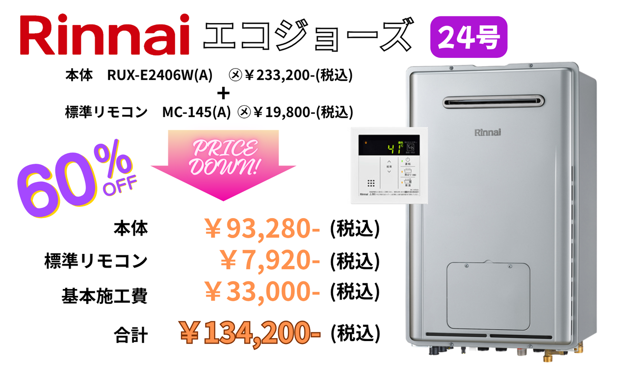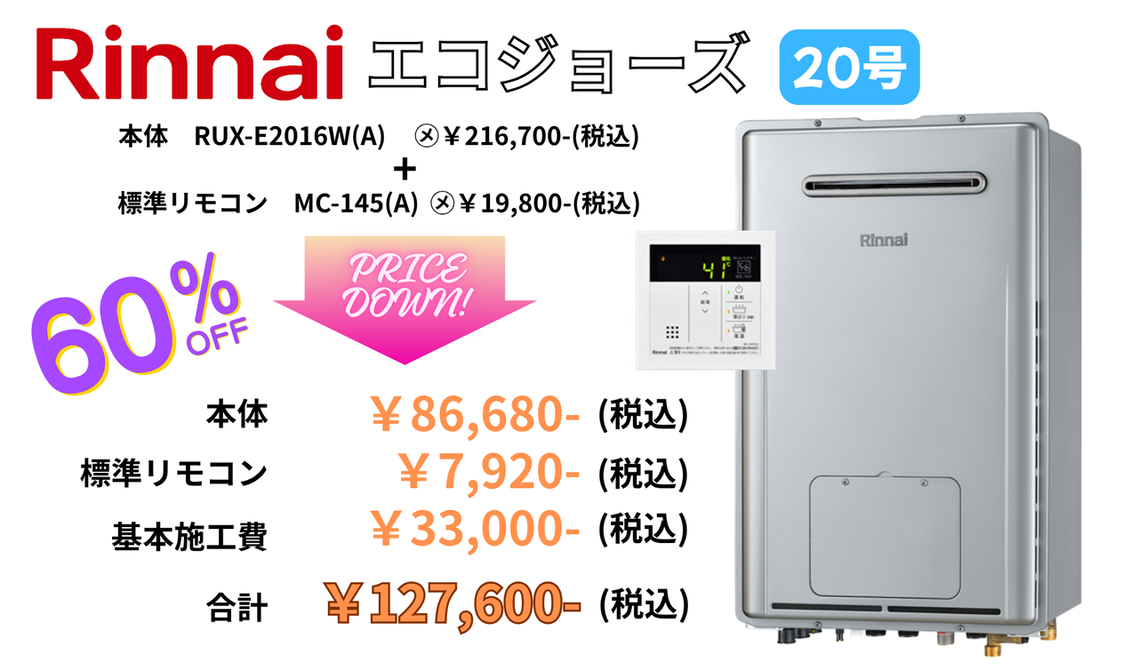 1.上位機種のエコジョーズが補助金交付により一般給湯器と大差無い金額で設置可能!